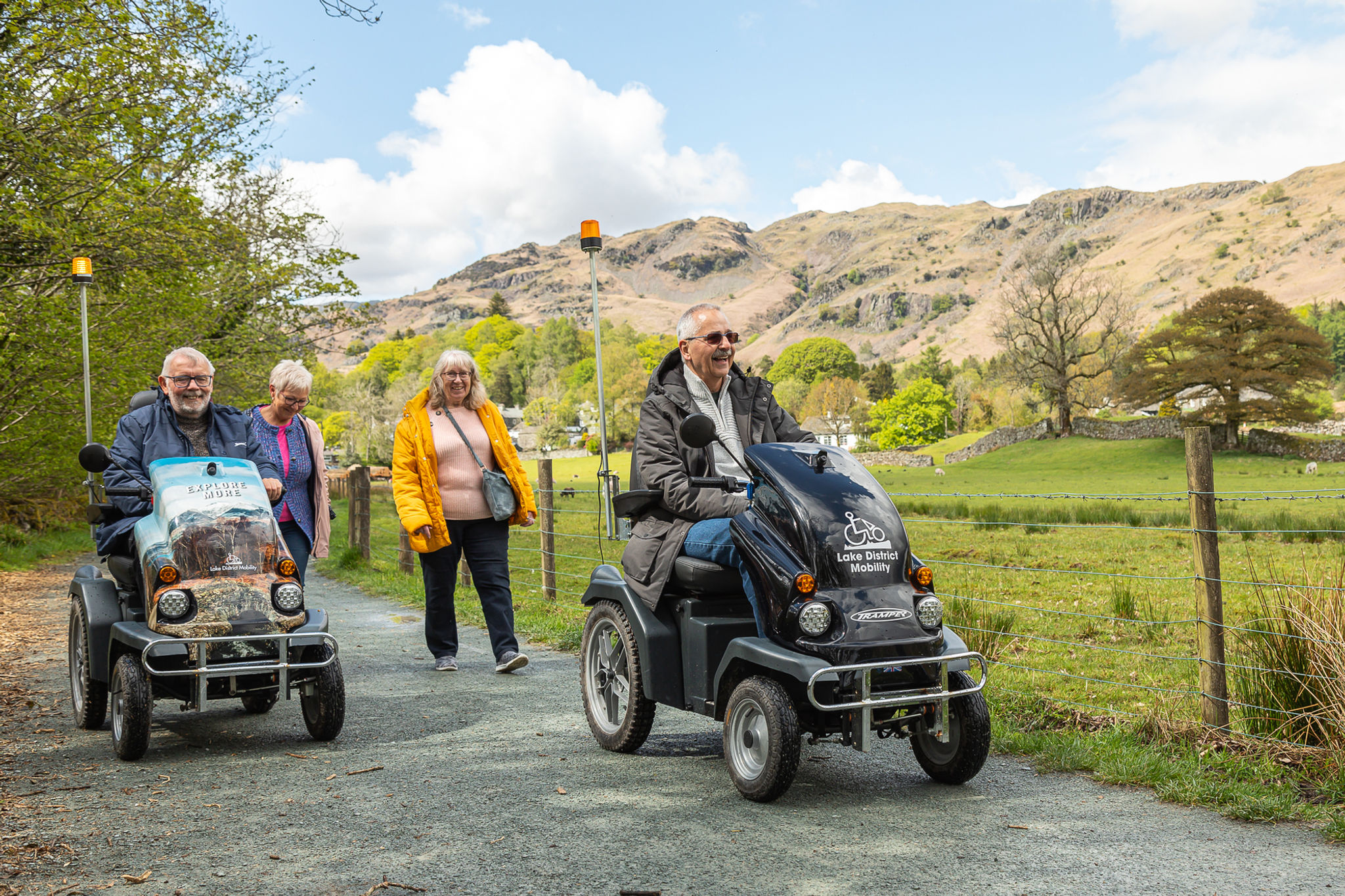 Elterwater Trail - collect the Tramper from Langdale Leisure Centre for a riverside trip, passing the shores of Elterwater and turning back at Chesters Café near Skelwith Bride, for a return journey back to the Leisure Centre.